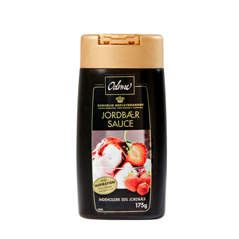 Ingredienser: Jordbær (50%), sukker, glukose-fruktosesirup, surhedsregulerende middel (E330), fortykningsmiddel (E440), gulerodskoncentrat, konserveringsmiddel (E202).